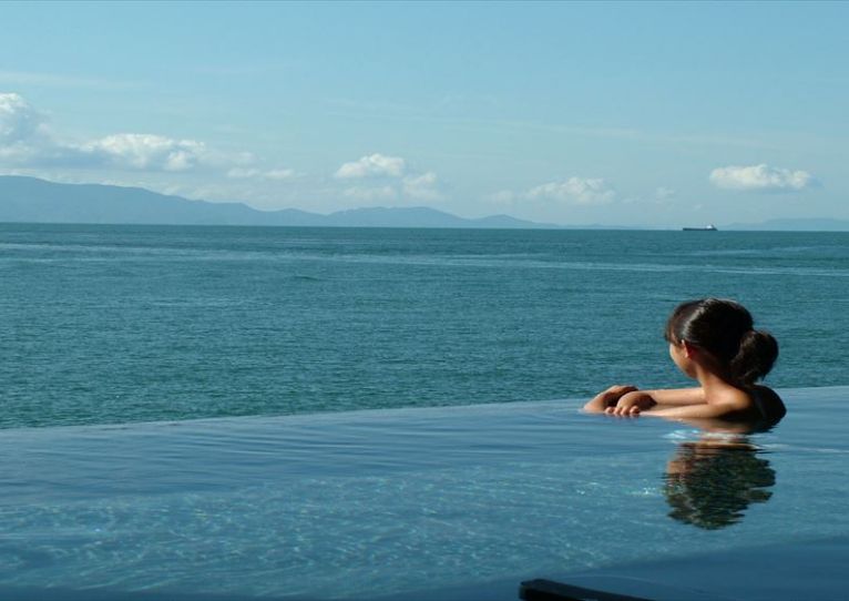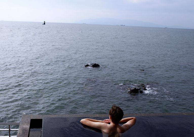 海と空にとけこむように作られた湯船から見る景色は圧巻の一言。瀬戸内の大パノラマが目の前に広がります。赤穂温泉の泉質は塩化物強塩低温泉。神経痛やリウマチ、慢性消化器病、冷え性などに効能があり、温泉の穴場として知られています。
